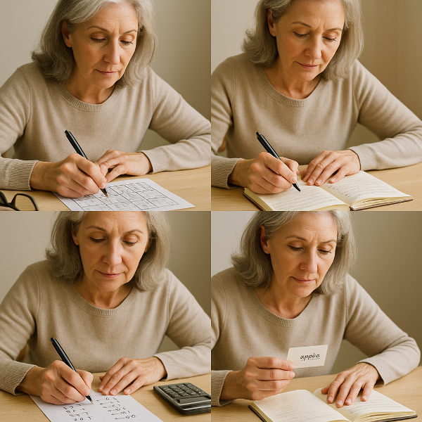 - 간단한 퍼즐 풀기, 일기쓰기, 숫자 계산, 외우기 등은